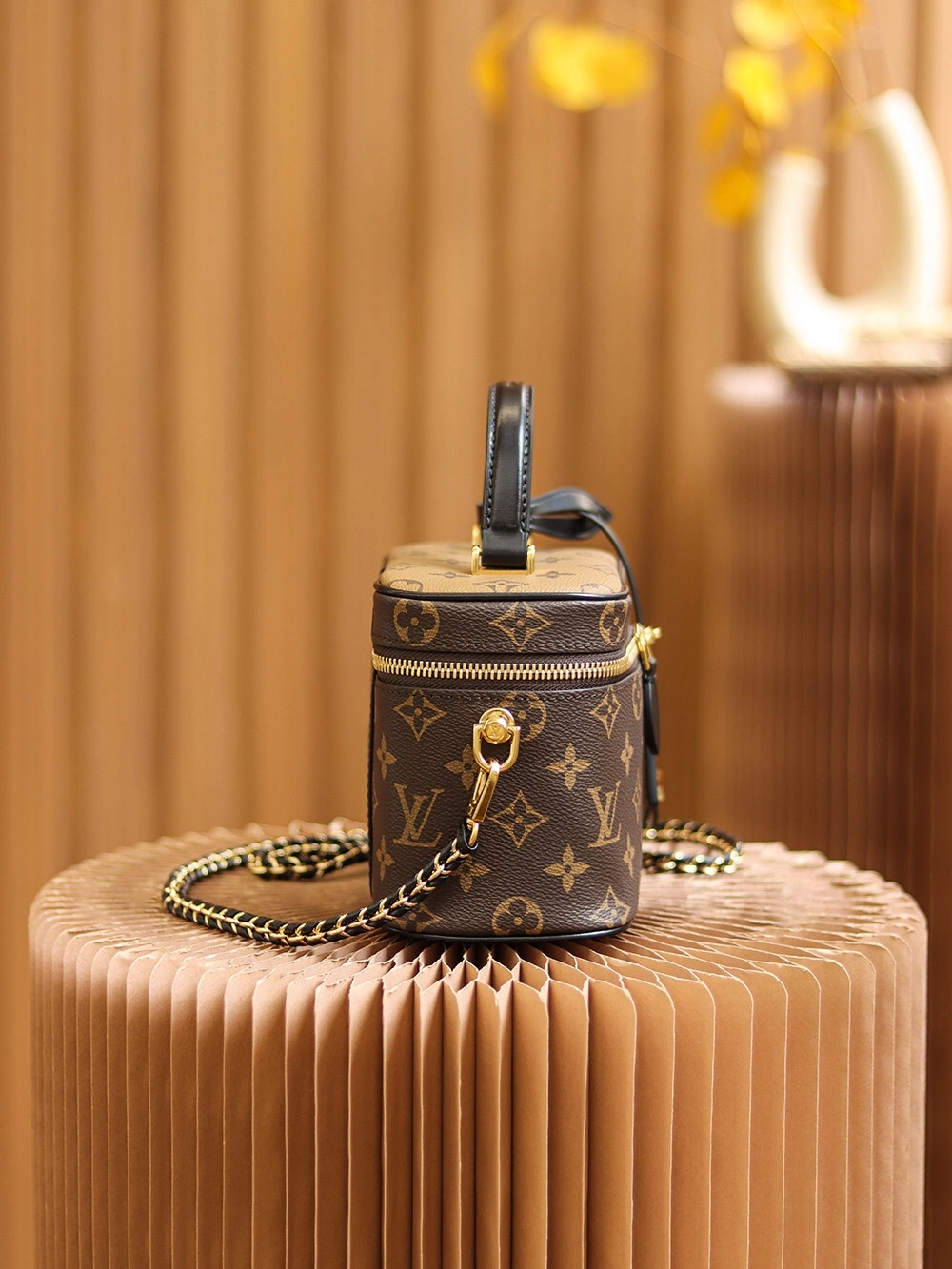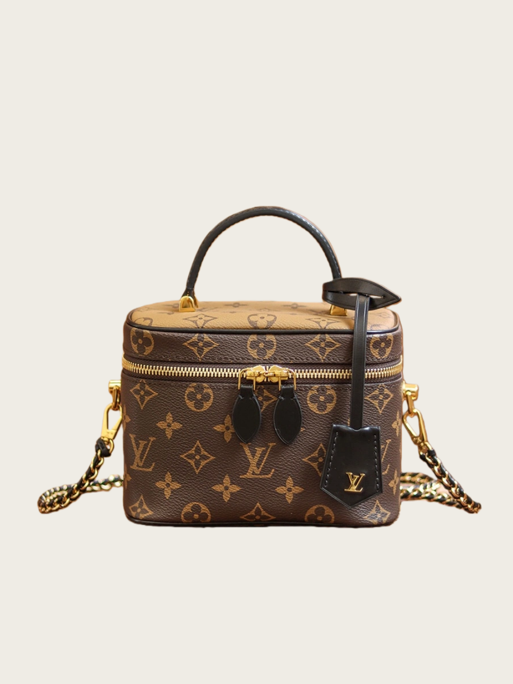 โซ๏ธ Runway-worthy design: The caramel-toned monogram print adds a vintage touch, while the structured silhouette screams timeless sophistication
