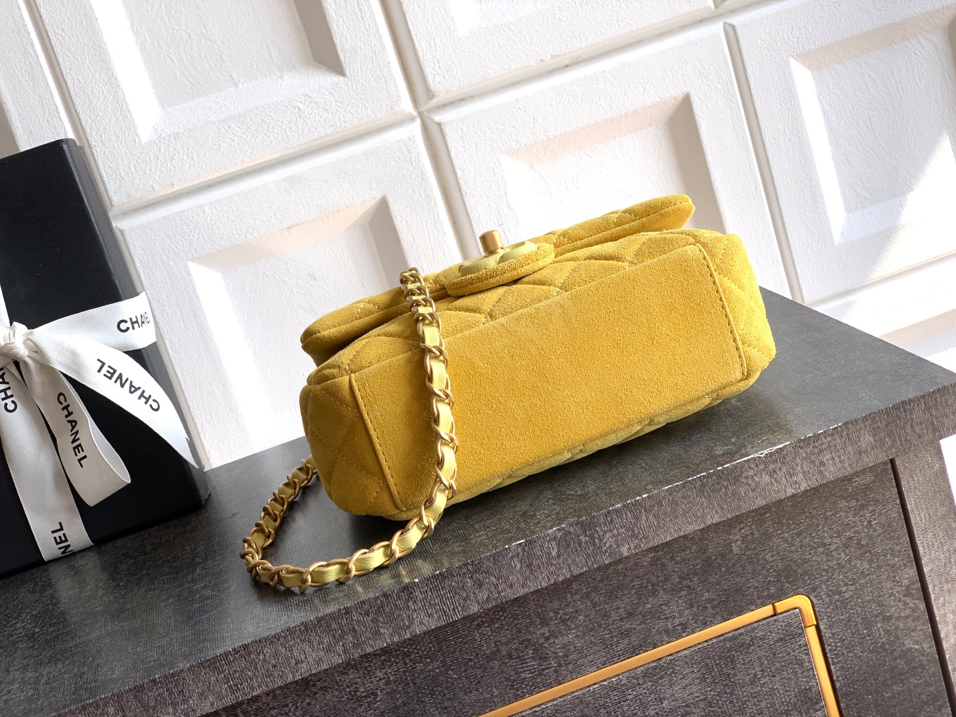 The lambskin is exceptionally **soft and rich**, making it the perfect accessory to carry through the autumn and winter seasons. Its versatile **leather-interlaced chain** allows for both shoulder and crossbody styling, while the proportions are ideal for practical, everyday wear.