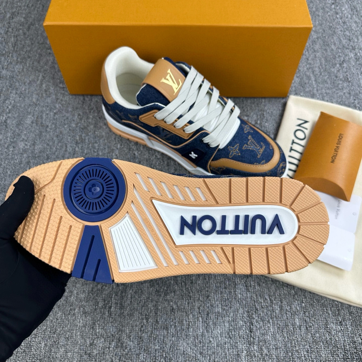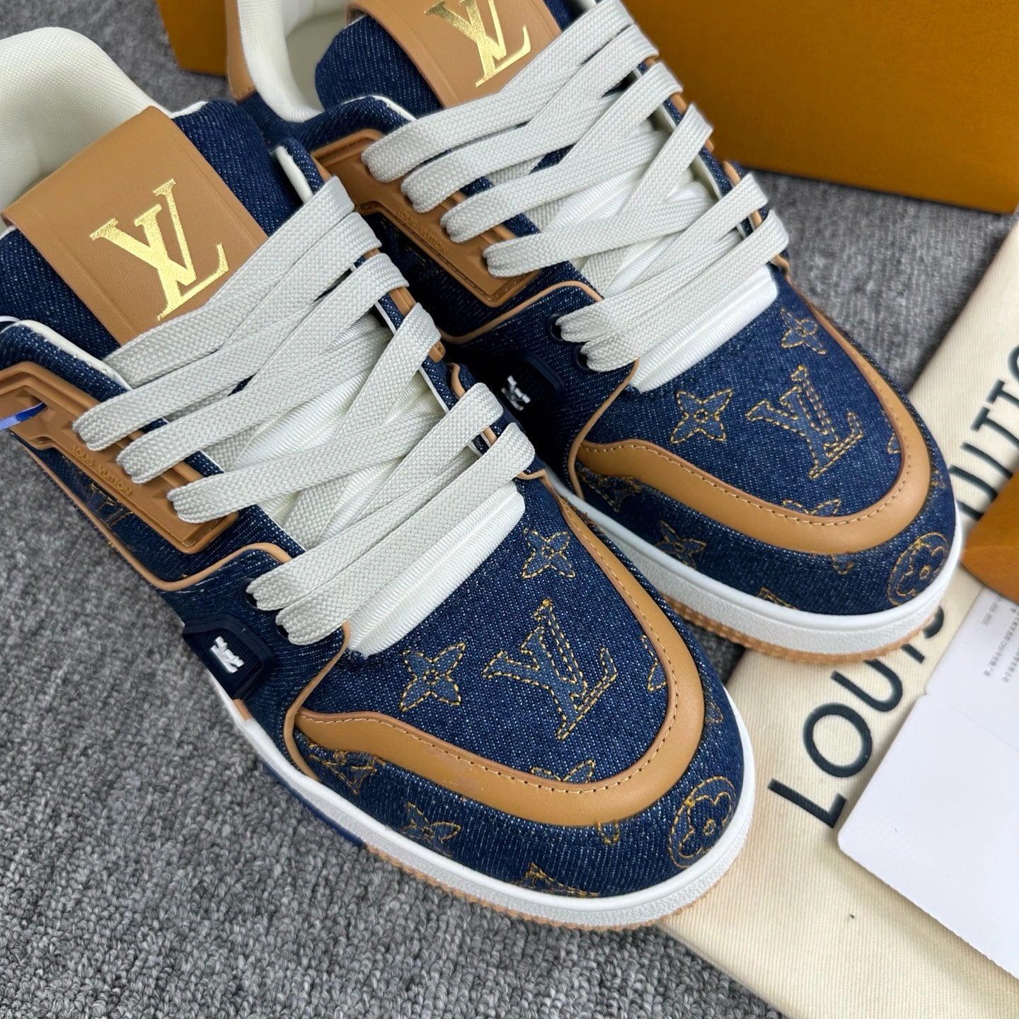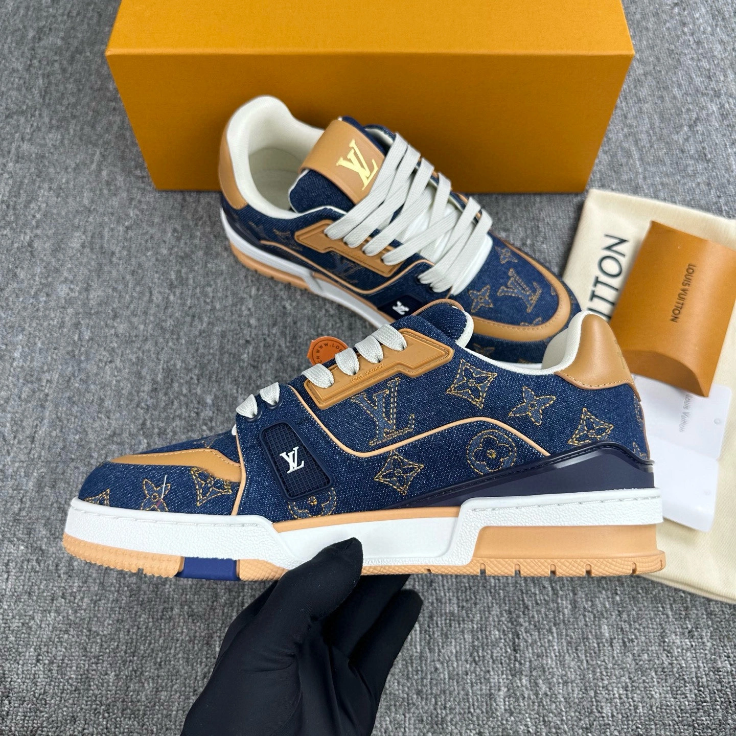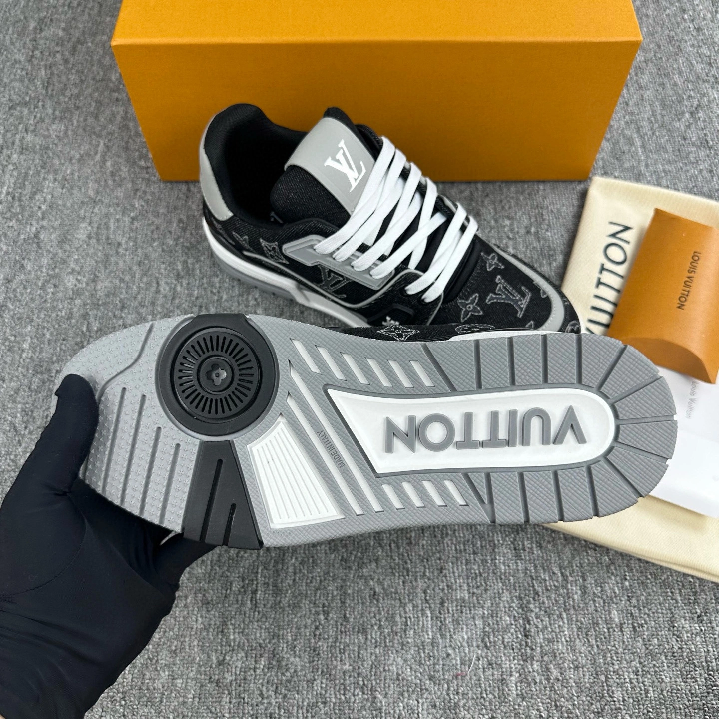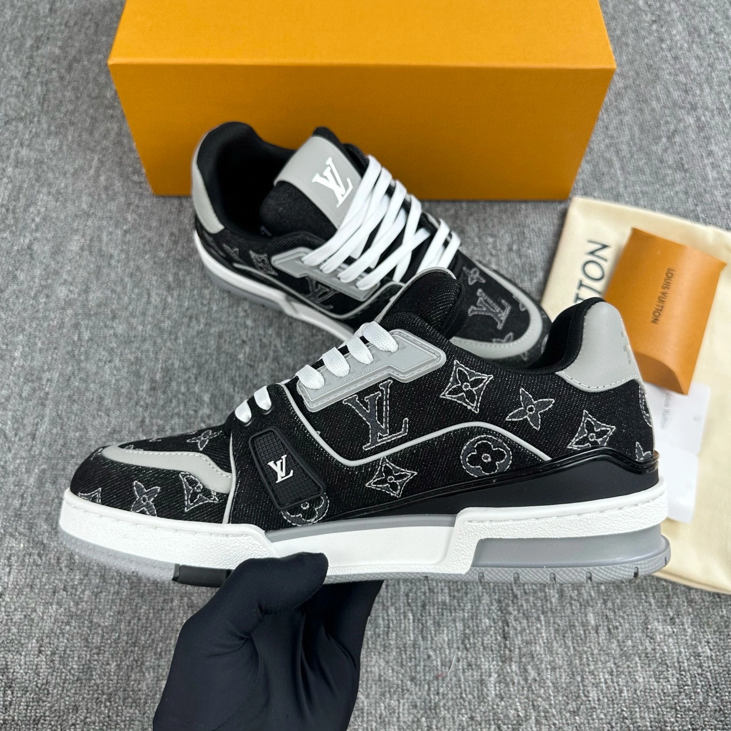 & Free ShippingLouis Vuitton Trainer Couple’s Sneakers in Denim Black