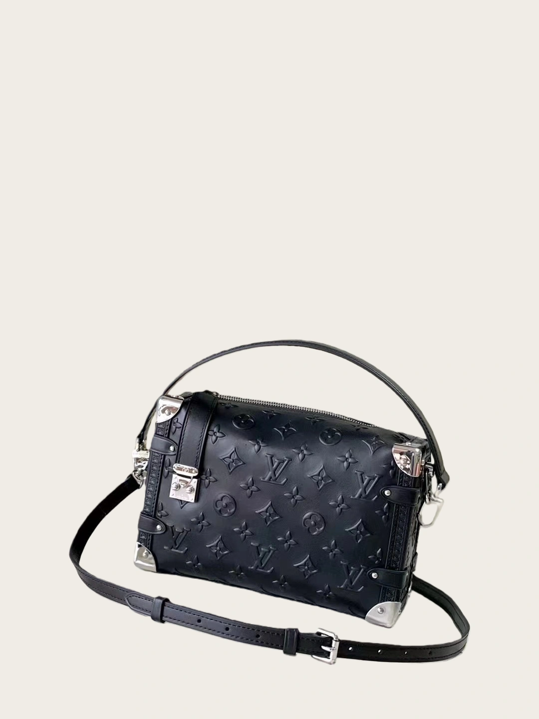 A modern reinterpretation of the iconic Petite Malle, the Side Trunk reimagines classic trunk-inspired design with a supple, feminine twist. Retaining the signature S-lock, metal corners, and Monogram embossing of its predecessor, this 21cm × 14cm × 6cm masterpiece softens its silhouette while amplifying its versatility and wearability.